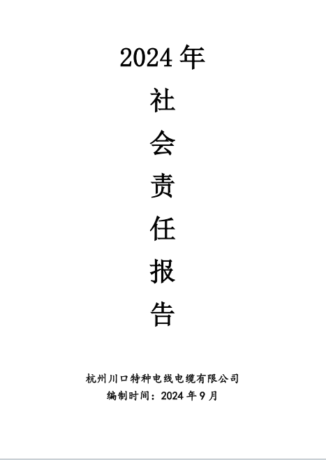 本报告的组织范围为杭州川口特种电线电缆有限公司。本报告描述了2022年1月1日至2022年12月31日期间,公司在股东权益与债权人权益保护,职工权益保护,供应商、客户和消费者权益保护,环境保护与可持续发展,公共关系和社会公益事业等方面的理念、制度、采取的措施和取得的绩效等。